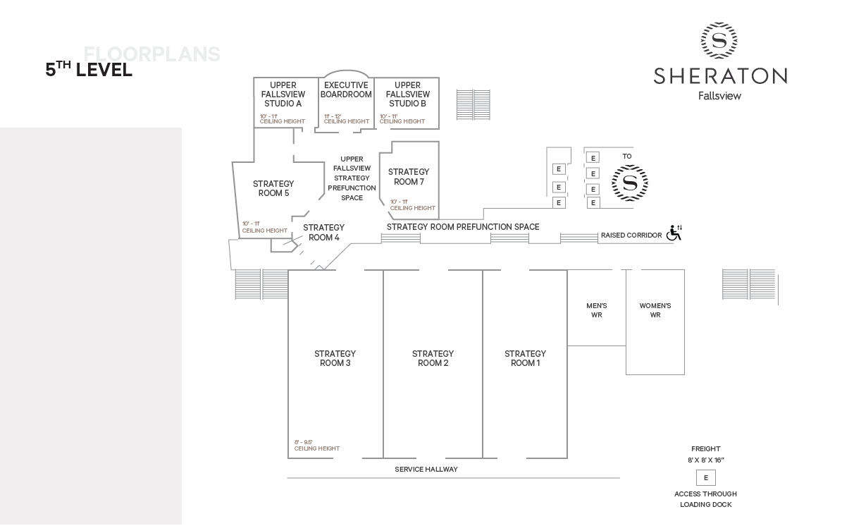 The 5th floor can be accessed via the elevators. This is where the locations are for some workshops. Click the map for an expanded view.